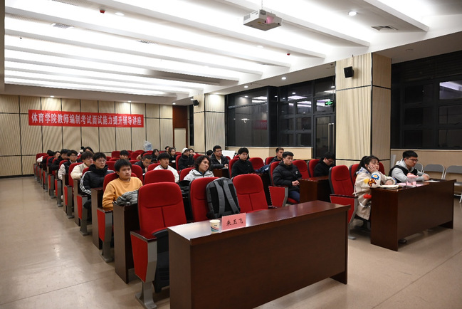 2月24日晚,体育学院举办教师编制考试面试能力提升辅导讲座。讲座分两场进行,第一场由体育学院专任教师李烨和学工办主任屈文文主讲,第二场由学生工作处副处长朱玉飞主讲。讲座由学院直属党支部副书记谢军主持,学院1901班、2001班全体学生参加。