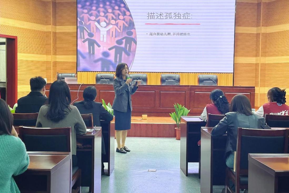 会后,靖江市融合教育高质量发展讲堂第一讲开讲,靖江市普通学校、市特殊教育学校、市儿童康复训练中心相关教师参加培训。我校特殊教育学院慕雯雯博士从孤独症的描述、融合教育的概念、规则与程序等方面为大家带来融合教育前沿的教育理念、实用的教学方法和宝贵的实践经验。