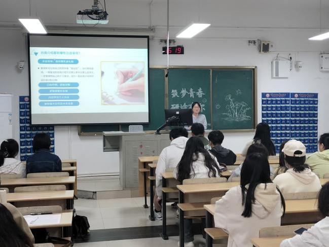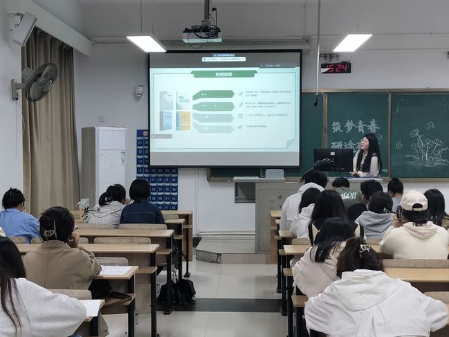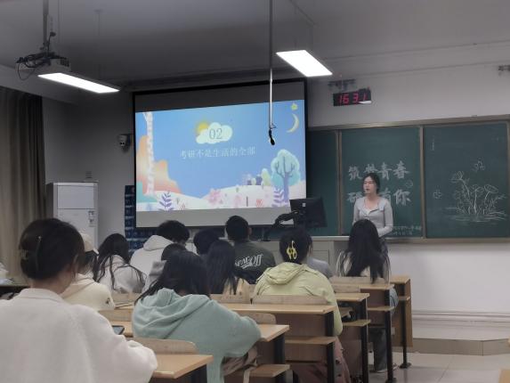 林晓雯同学提出同学们在选取自己的考研院校时要关注目标院校的初试复试比例,指出初试中知识要点。在复试时注意仪表和礼仪,表达逻辑清晰有条理。黄婷同学从心理调适这一方面来为同学们展开分享,以自身的考研经历指出“来得及,考得上”“考研不是生活的全部”“保持自信,不必花时间怀疑”等观念,给同学们加油打气,帮助同学们调整心态。