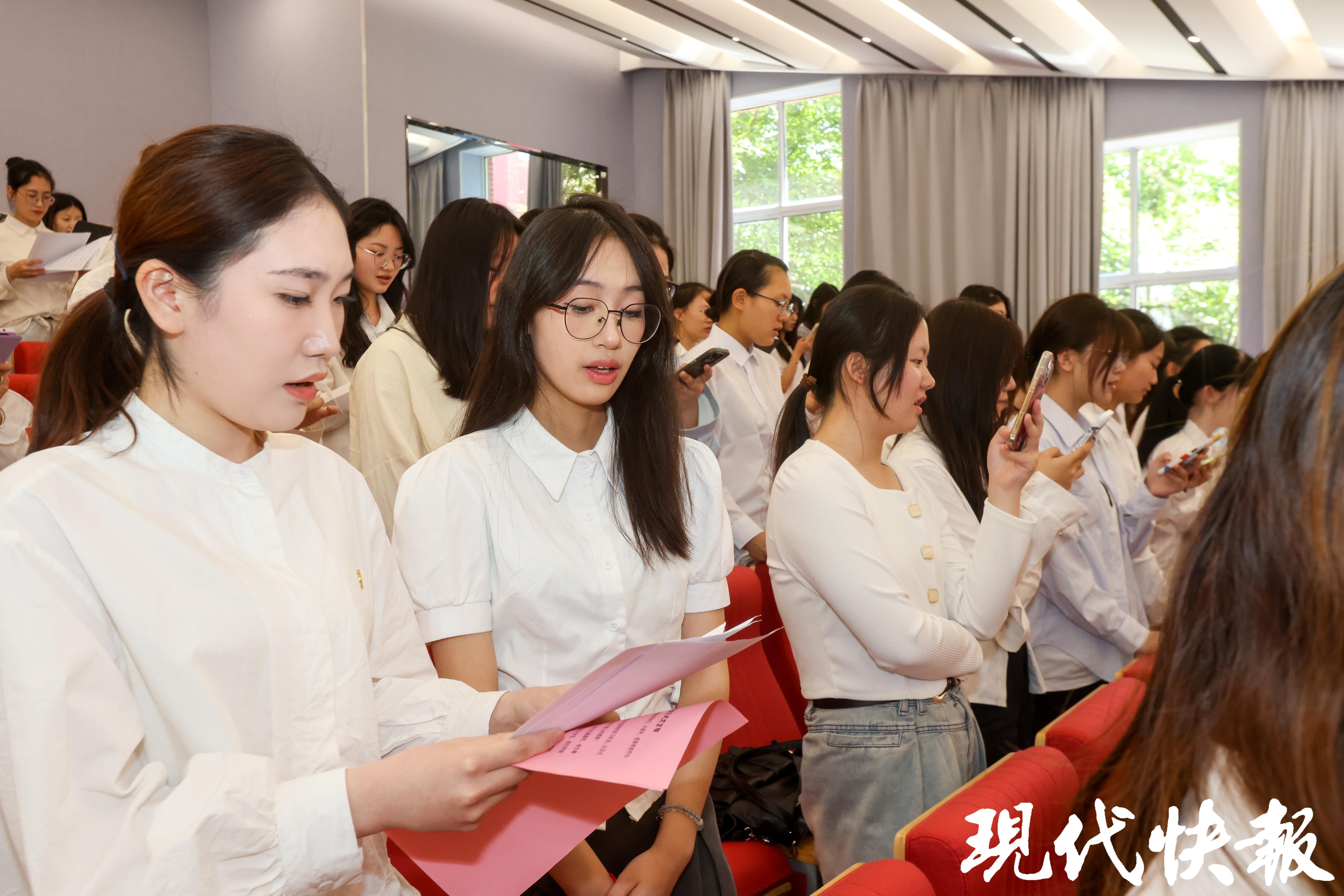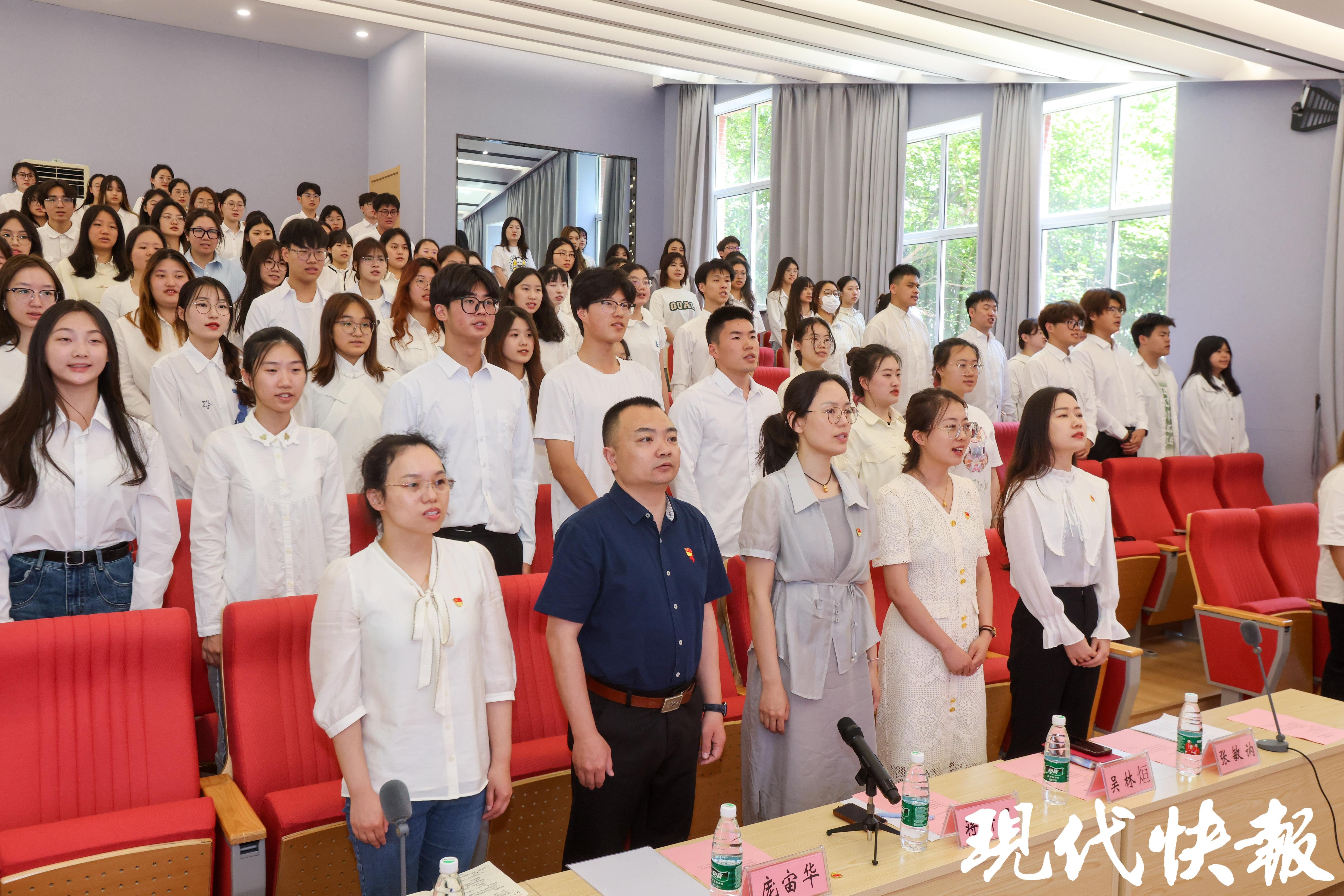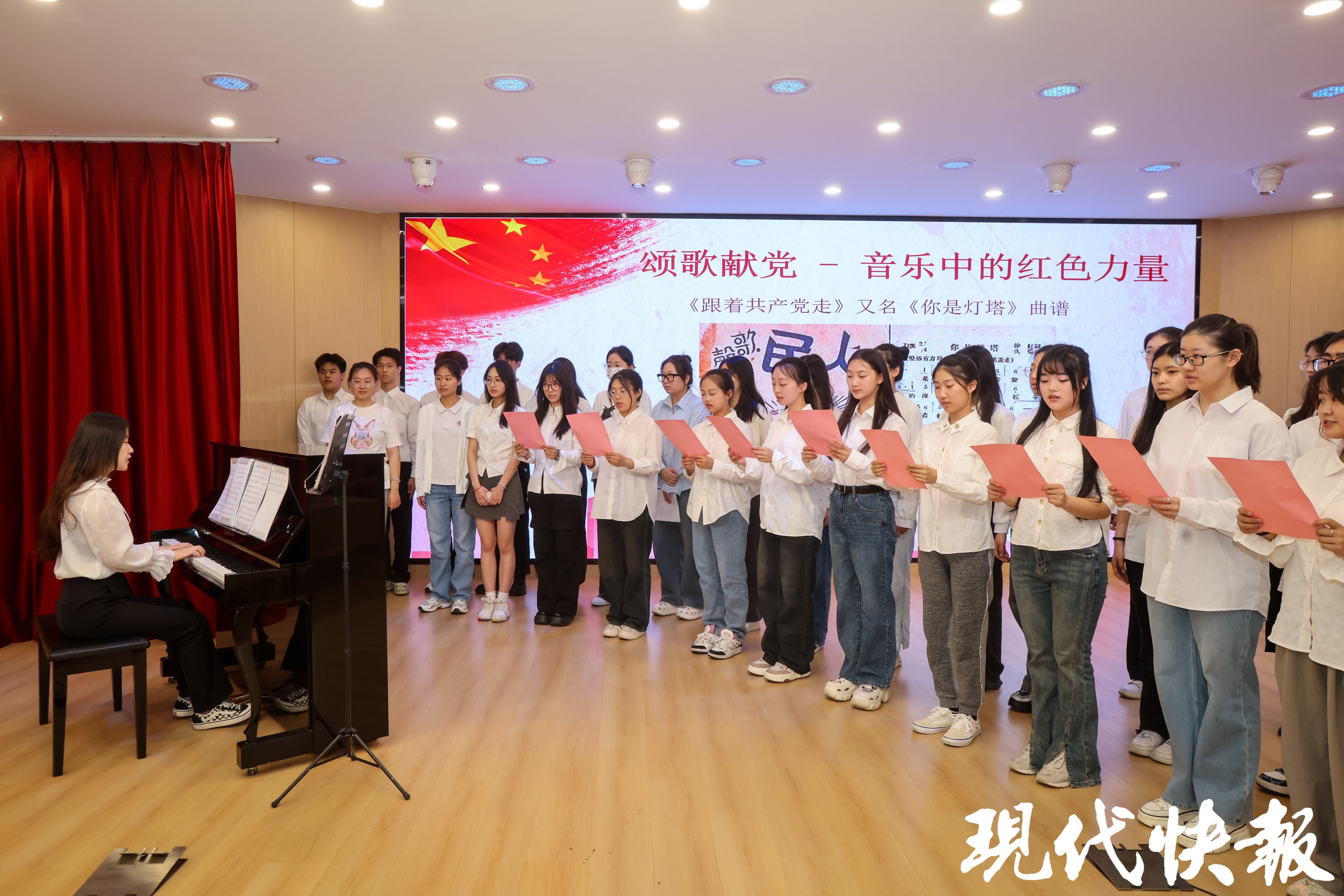 现代快报讯(记者 李楠 文/摄)带着乐谱去上党课?5月14日,南京特殊教育师范学院音乐与舞蹈学院的同学们带着这样的疑问走进了音乐厅。据悉,这是该学院党总支为全体入党积极分子培训班学员打造的音乐党课,将音乐与党史有机结合,以音乐之美厚植爱国情怀。