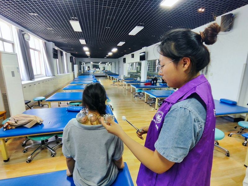 在手法治疗实验室中,志愿者们向前来参观的同学们展示了缓解病痛、提升关节灵活度的按摩手法,同时也邀请大家体验了拔火罐这一传统治疗手法。前来体验的同学们表示,虽然拔火罐开始有些疼,但是到了后面感觉蛮舒服的。同学们拿起手机,拍摄拔火罐的过程,迫不及待地将这次有趣的体验分享给朋友们。