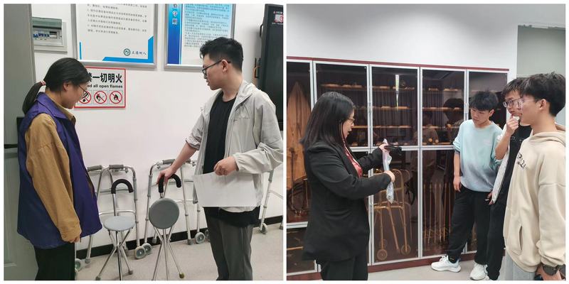 在康复辅具实验室中,同学们深入了解了各类辅具的适配原则和使用技巧。盲杖、轮椅、助行器、助视器,同学们在体验中,体会到了康复辅具所带来的便利和舒适,也激发了他们在这一领域探索和创新的热情。