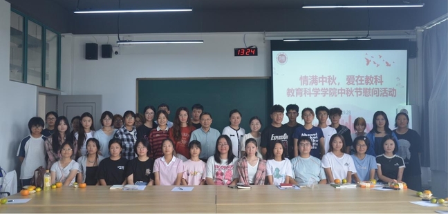 为使2025级新生在异乡度过一个温暖的中秋佳节,传递学院的关怀与问候,教育科学学院于2025年9月28日下午在江宁校区举办了新生中秋慰问活动。出席活动的有教育科学学院党总支书记吴月华老师、院长刘新学老师、团总支书记汪亮巧老师、辅导员余宛琳老师,以及2025级各班学生代表。