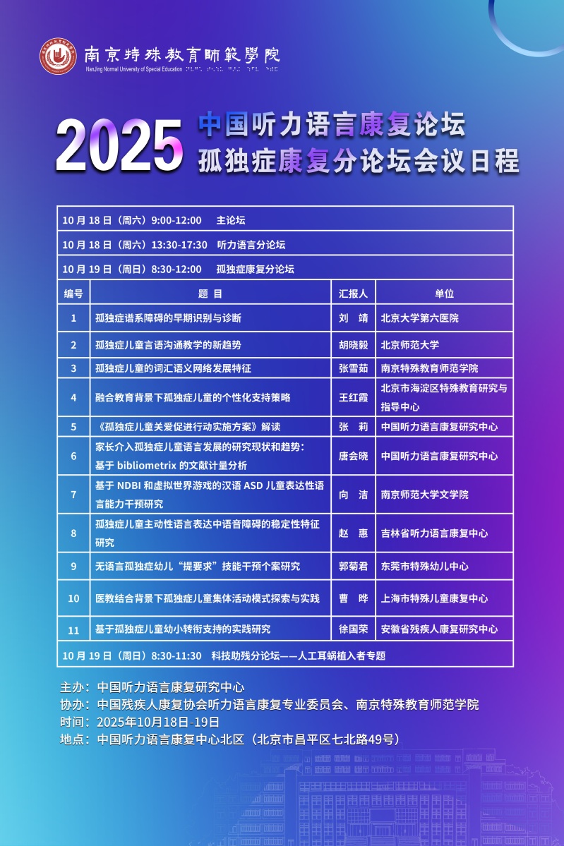 【学术预告】10月18—19日 中国听力语言康复论坛孤独症康复分论坛