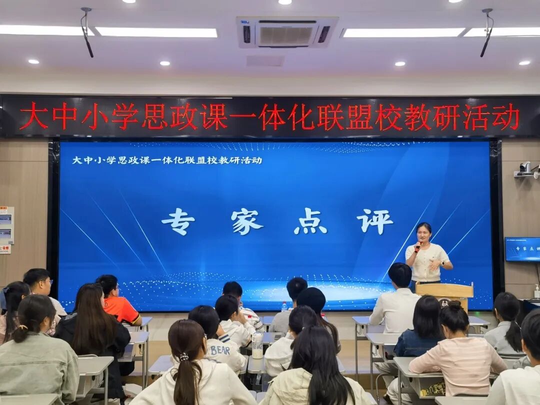 马克思主义学院直属党支部书记黄珏在专家点评中,充分肯定了本次教研活动的重要意义。她指出,两堂展示课充分体现了“小学重感知、大学重深化”的一体化育人逻辑,展现了良好的教学衔接效果。黄书记强调,作为高校马克思主义学院,我们肩负着推动大中小学思政课一体化建设的重要使命,未来将进一步加强与立贤小学的合作,共同探索思政教育规律,构建更加科学完善的思政育人体系。