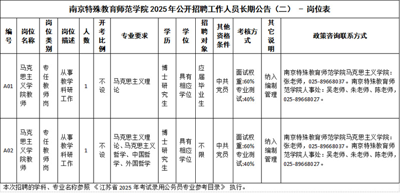 附件:南京特殊教育师范学院2025年公开招聘工作人员长期公告(二)-岗位表.xlsx