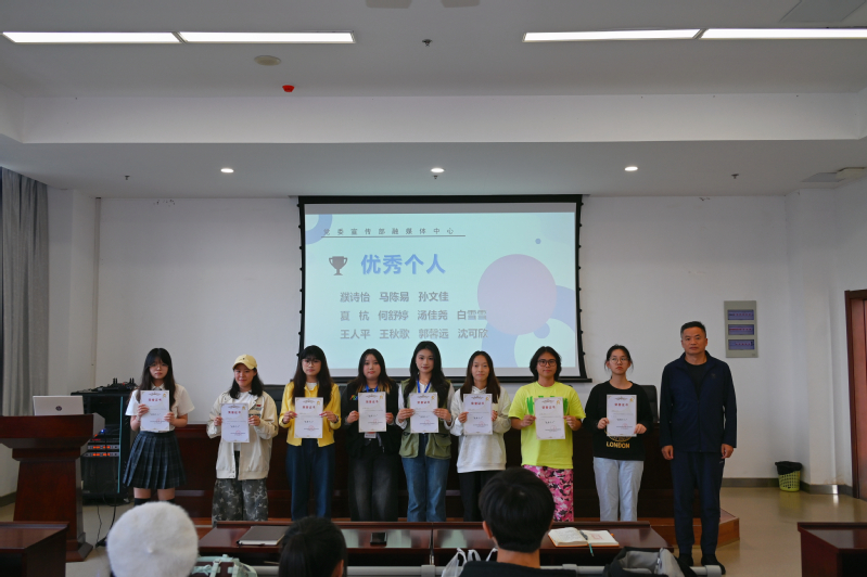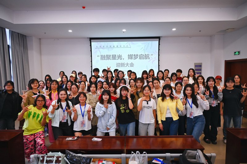 沉淀过往,迎接新光。为表彰先进、凝“新”聚力,我校党委宣传部融媒体中心于10月15日在实训实验大楼301举办“融聚星光,媒梦启航”迎新见面会暨表彰会。学生工作处副处长朱玉飞、党委宣传部副部长冷晴、党委宣传部融媒体中心袁姝老师以及中心60余名学生共同参与活动。