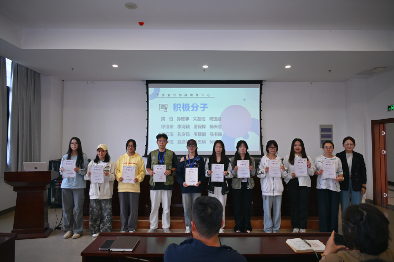 朱玉飞副处长和冷晴副部长分别为“优秀骨干”“优秀个人”和“积极分子”获得者颁奖。同时,他们也对融媒体中心未来的发展提出了殷切期望,鼓励大家要加强团队协作,发挥各自优势,更好地展现学校的风采和师生的精神面貌。