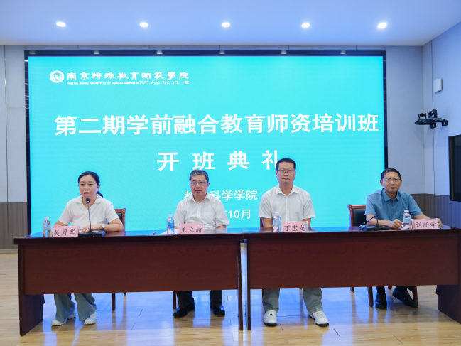 王立新校长参加开班仪式致辞,他指出,学前融合教育是一项充满挑战又意义非凡的事业,鼓励学员珍惜培训机会,善于学习、勇于实践、敢于创新,成为学前融合教育的倡导者、践行者和推动者。教育科学学院刘新学院长详细介绍了学校在学前融合教育领域的积极探索和实践。来自南京市栖霞区幼儿园的高智萍老师作为代表发言。江苏省特殊教育师资培训中心办公室主任兼继续教育学院院长丁宝龙也参加了开班仪式,教育科学学院党总支书记吴月华主持。