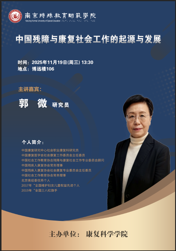 【学术预告】11月19日 郭微 中国残障与康复社会工作的起源与发展