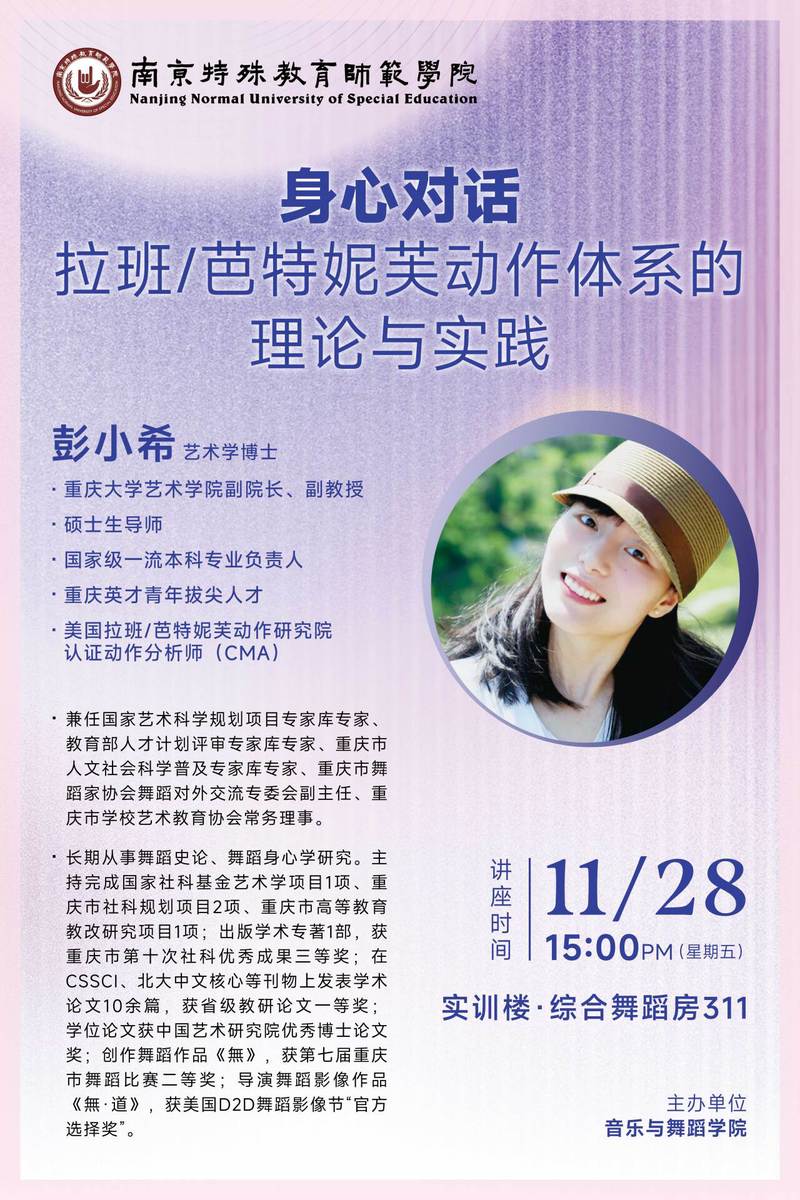 【学术预告】11月28日 彭小希 身心对话——拉班/芭特妮芙动作体系的理论与实践