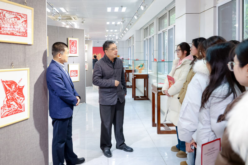 12月12日,我校课程思政特色项目——中华剪纸艺术展开幕式在图书馆2楼展厅举办。校党委副书记、校长王立新,党委副书记谭忠,党委常委、副校长高飞,党委常委、宣传部部长朱正东出席开幕式。本次活动由教育科学学院主办,该院实践与就业基地负责人——南京市栖霞区特殊教育学校校长汤一梅,南京幕府山庄小学党支部书记戴春霞,以及学校有关职能部门和二级学院负责人,学校广大师生一同观展。开幕式由校党委办公室兼教育科学学院党总支负责同志主持。