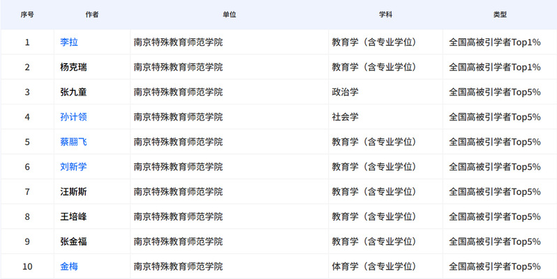 李拉教授围绕融合教育领域,以南京特殊教育师范学院为作者单位累积在中国知网发表学术论文80余篇,被引用共1000余次。杨克瑞教授自加盟我校以来,累计以南京特殊教育师范学院为作者单位,发表学术论文30余篇,累计下载量近20000次,被引用近300次。