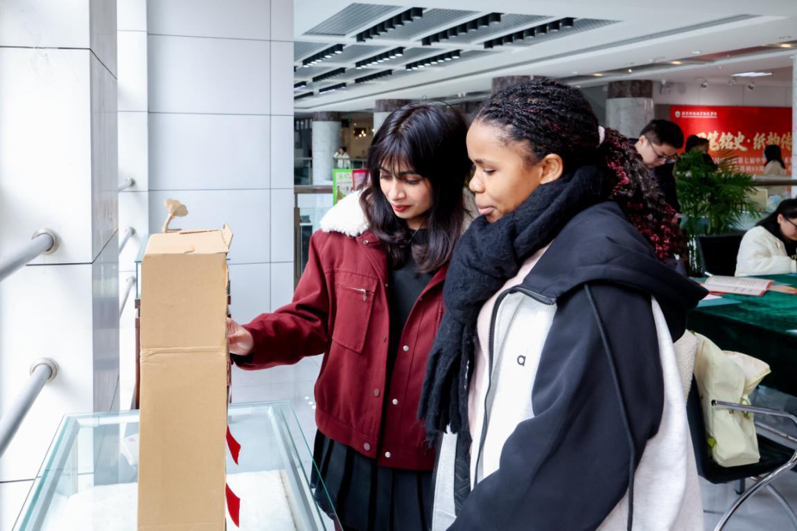 尤为值得一提的是,本次展览由大学生自主办展。同学们在学院和有关部门的支持下,以当代青年的历史自觉与文化担当,全程参与策划与创作。从前期的史料搜集、主题研讨,到中期的构图设计、技艺攻关,再到后期的布展策划、宣传推广,学生们真正成为学习的主人。在任课教师吕艺征老师的专业细致辅导下,同学们将《手工基础》课中的所学转化为具有思想深度的艺术表达,鲜活体现了专业学习、艺术实践与思想政治教育的有机融合。这种“项目制”的学习模式,不仅锻炼了学生的动手能力,更培养了他们的团队协作精神、项目管理能力和创新思维,为师范专业人才培养提供了宝贵的实践平台。