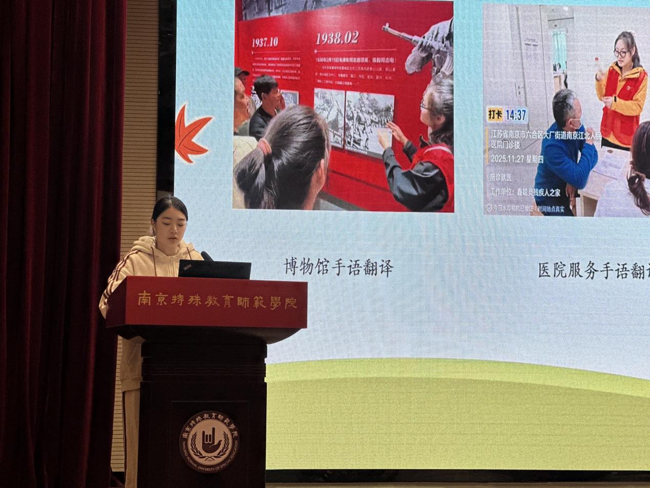 优秀实习生代表分享了实习收获。特殊教育专业许杨淑涵表示,通过参与课堂教学设计与实施,将专业理论知识转化为实际教学能力;手语翻译专业李鑫源表示,通过精准翻译和个性化沟通支持,助力学生顺利融入校园生活;应用心理学专业滕怡媛表示,运用专业评估工具参与制定行为支持方案,在解决实际问题中体会到心理学在特教支持体系中的重要价值。三位同学的分享生动具体,体现了不同专业背景下的实践路径与共同成长。
