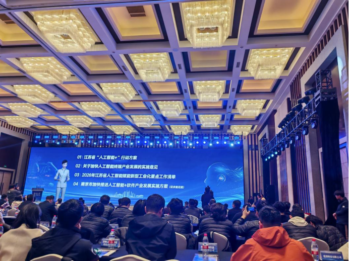 在江苏省人工智能产业发展大会现场,数字主持人发布了《江苏省关于“人工智能+”的行动方案》《江苏省关于加快人工智能终端产业发展的实施意见》等政府规划文件,中国科学院院士周志华和中国工程院院士于海斌分别发表《关于人工智能OPC的思考》和《人工智能全面赋能制造业发展》的主旨报告,来自中国信通院、阿里云智能集团、浩鲸科技、玄武大模型工厂等企业的专家围绕技术突破与产业应用展开深度分享。