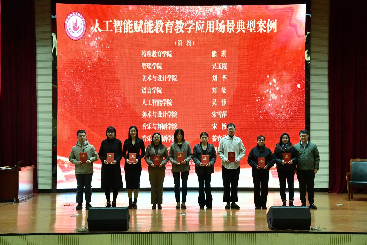 2025年,围绕立德树人根本任务,学校在课程思政建设、人工智能赋能教学、学科竞赛育人等关键领域组织开展多项教学案例评选,得到广大教师的积极响应与深度参与,呈现出“全员参与、全科覆盖、全程融入”的良好态势,涌现出一大批高质量、可推广的优秀成果。其中,8个专业获评课程思政典型案例,24门课程获评课程思政典型案例,16个应用场景获评人工智能赋能教育教学应用场景典型案例,8个作品获评“学科竞赛”优秀案例。校党委常委、副校长吴彬江,校党委常委、宣传部部长朱正东,党委学生工作部部长、信息化建设与管理中心主任分别为获奖教师颁发荣誉证书,颁奖仪式由教务处负责人主持,现场掌声不断,气氛热烈。