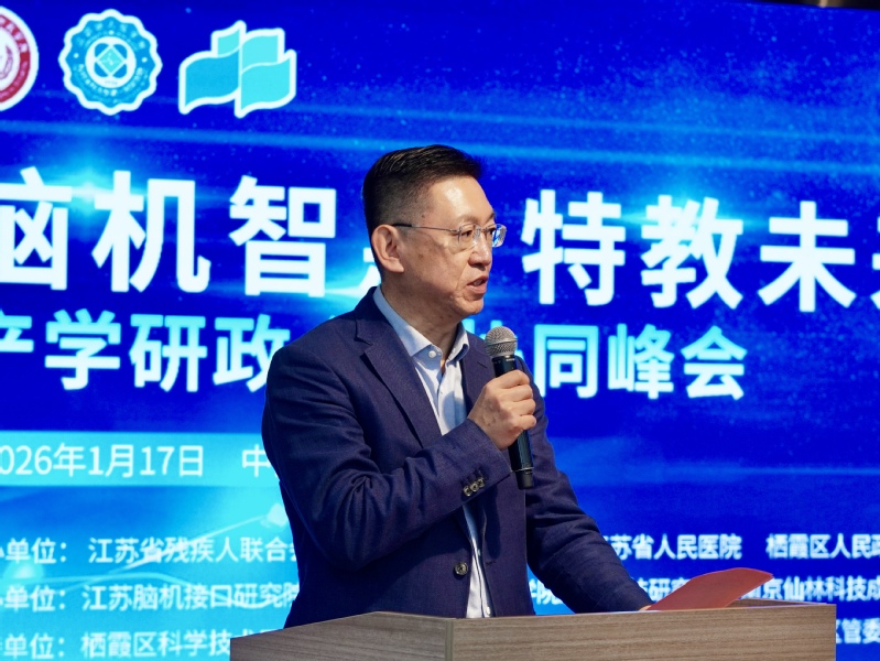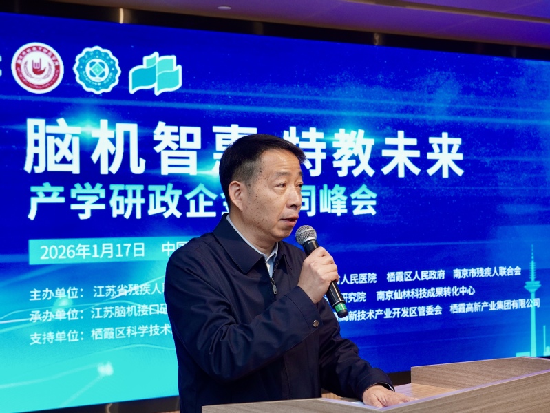 为积极响应国家“十五五”规划关于前瞻布局脑机接口等未来产业、加强产学研医协同的号召,把握脑机接口技术加速赋能各行业的战略机遇,1月17日,由江苏省残疾人联合会、栖霞区人民政府、南京市残疾人联合会、江苏省人民医院与南京特殊教育师范学院共同主办的“脑机智惠 特教未来——产学研政企金协同峰会”在南京仙林科技成果转化中心举办。来自政府、产业、高校、科研、医疗、金融等领域的百余名代表齐聚一堂,共同探索脑机接口前沿科技赋能特殊教育、服务残疾人群体的创新路径与实践方案。