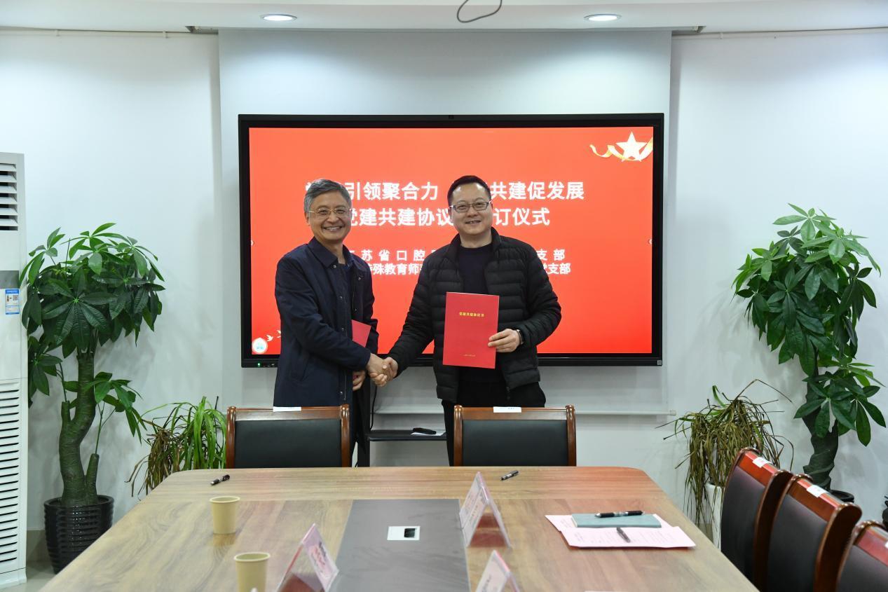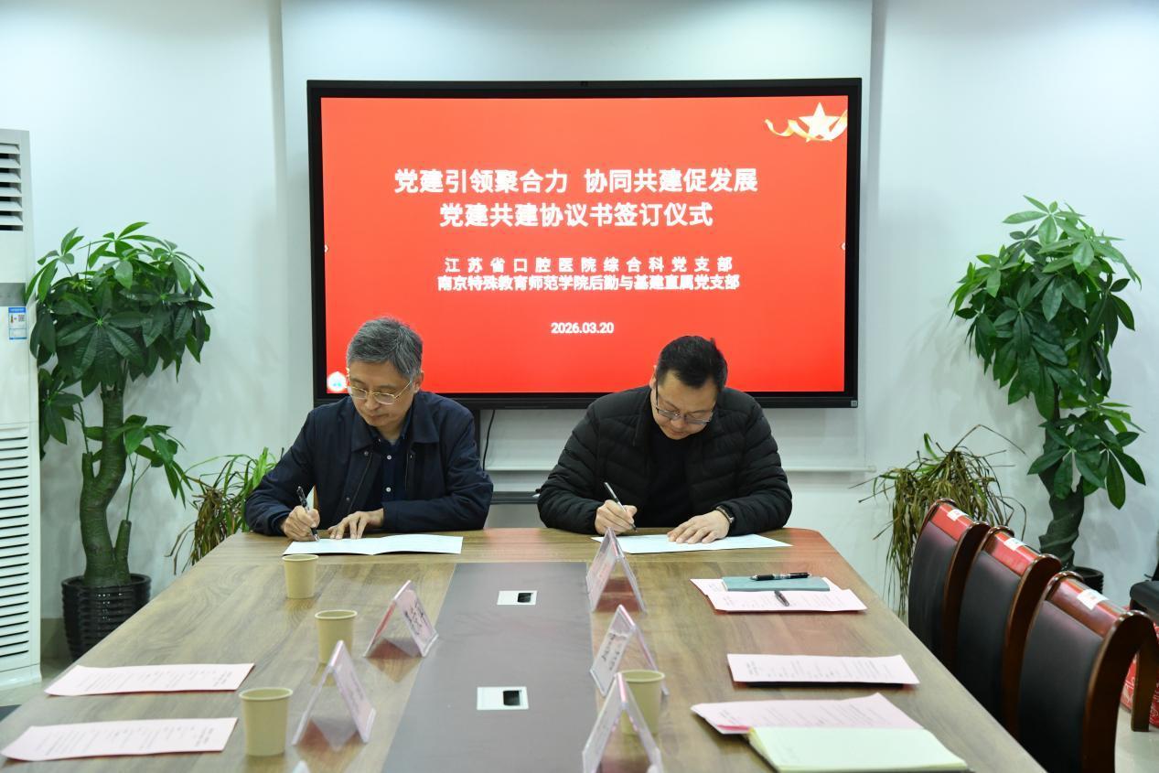 南京医科大学附属口腔医院综合科党支部与南京特殊教育师范学院后勤和基建直属党支部聚焦党建与实务深度融合,深入交流支部建设经验、明确后续合作方向,正式签署《党支部共建协议书》,创新构建党建、特殊教育、口腔健康协同模式,打破支部壁垒、整合医校优势资源,搭建起支部资源共享、优势互补的常态化合作平台,切实筑牢医校联动共建根基。