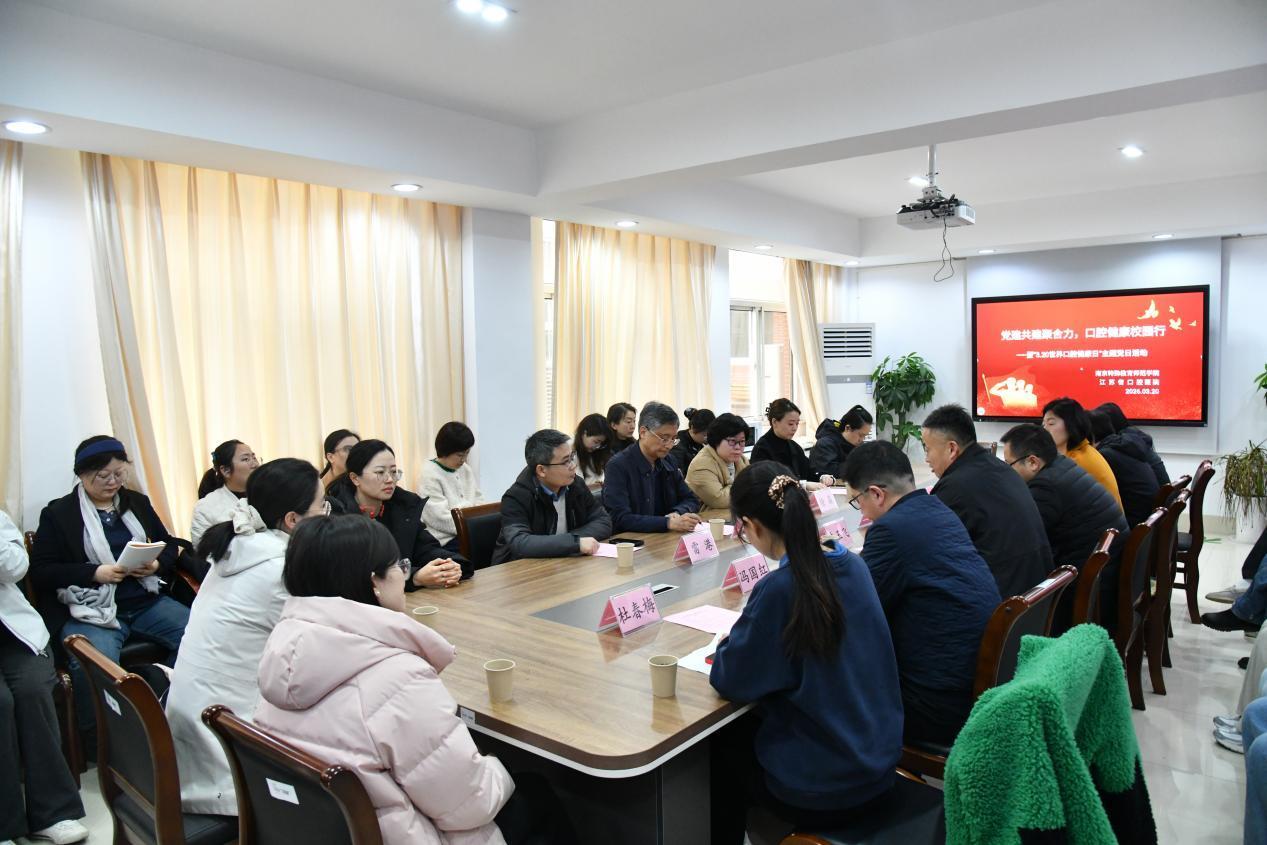 为深入贯彻健康中国战略,充分发挥党支部战斗堡垒作用和党员先锋模范作用,在“3.20世界口腔健康日”来临之际,南京医科大学附属口腔医院急诊和综合诊疗科党支部、杂志编辑部党支部、第七门诊部党支部,联合南京特殊教育师范学院后勤与基建直属党支部,开展“党建共建聚合力,口腔健康校园行”主题党日活动。活动以党建引领、服务师生、文化交流为核心,探索医校合作新模式,为师生普及口腔健康知识、提供专业义诊,实现党建与民生服务深度融合、双向赋能。