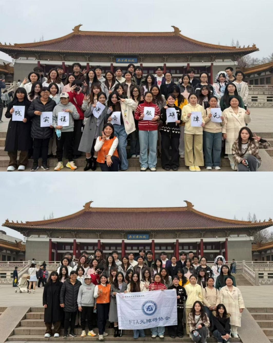 为深化无障碍管理专业的教学改革,推动课堂理论与公共服务实践深度融合,让专业知识真正落地见效,《无障碍服务》任课教师徐梦老师、欧美同学会代表高宸陆老师、许诺老师带领同学们走出教室深入社会大课堂。管理2431班联合FTA无障碍协会、燕子矶街道欧美同学会,于2026年3月26日下午走进南京博物院开展无障碍参观课程实践活动。本次活动以《无障碍服务》课程相关内容为依托,打破传统课堂教学边界,带领同学们走进文博公共服务一线,沉浸式探索无障碍服务落地路径,切实提升专业实践能力,为学院无障碍服务课程教学创新积累鲜活经验。