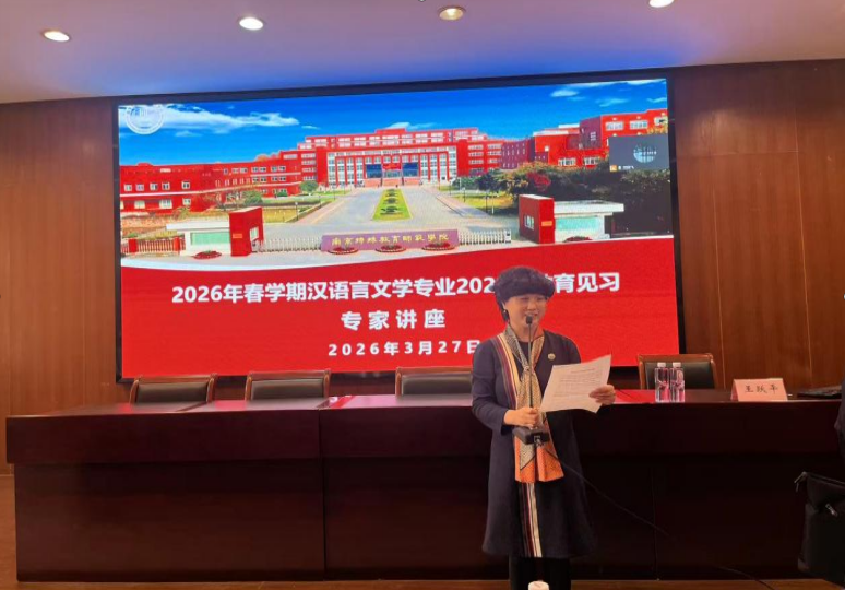 3月27日上午,语言学院在博韵楼114报告厅举办汉语言文学专业2023级教育见习专家讲座。本次讲座特邀南京市科利华中学教科室主任王跃平老师主讲,主题为“准教师必修课:初中语文教学设计与实施策略”。汉语言文学专业2023级全体学生及中文系教师参会,讲座由中文系主任赵惠岩教授主持。