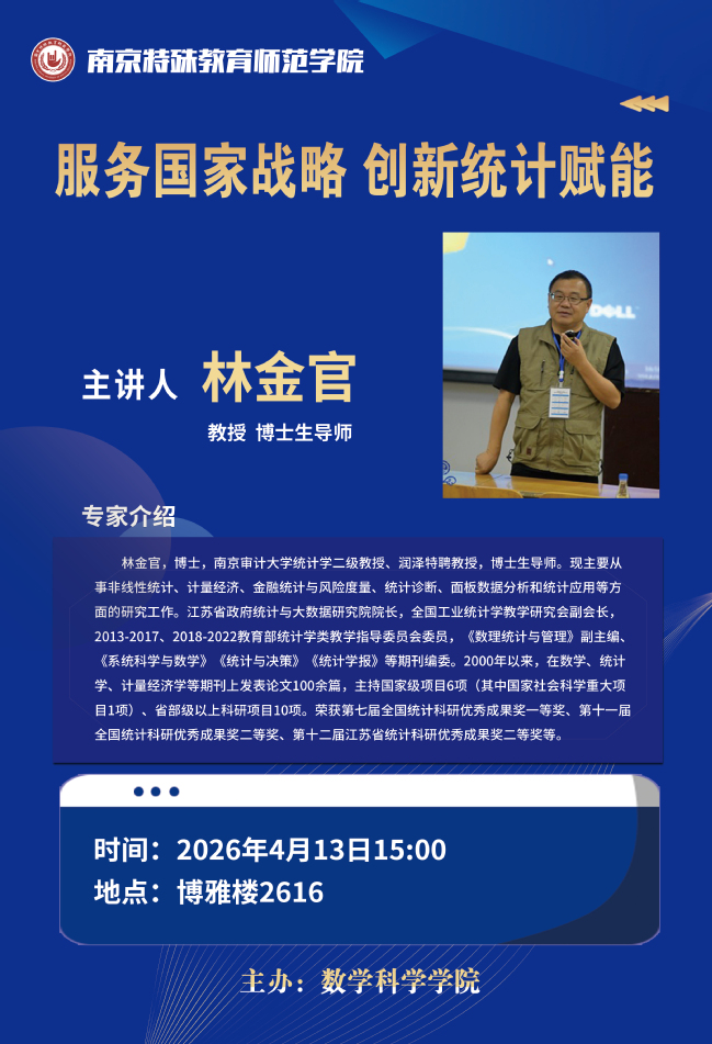 【学术预告】4月13日 林金官 服务国家战略 创新统计赋能