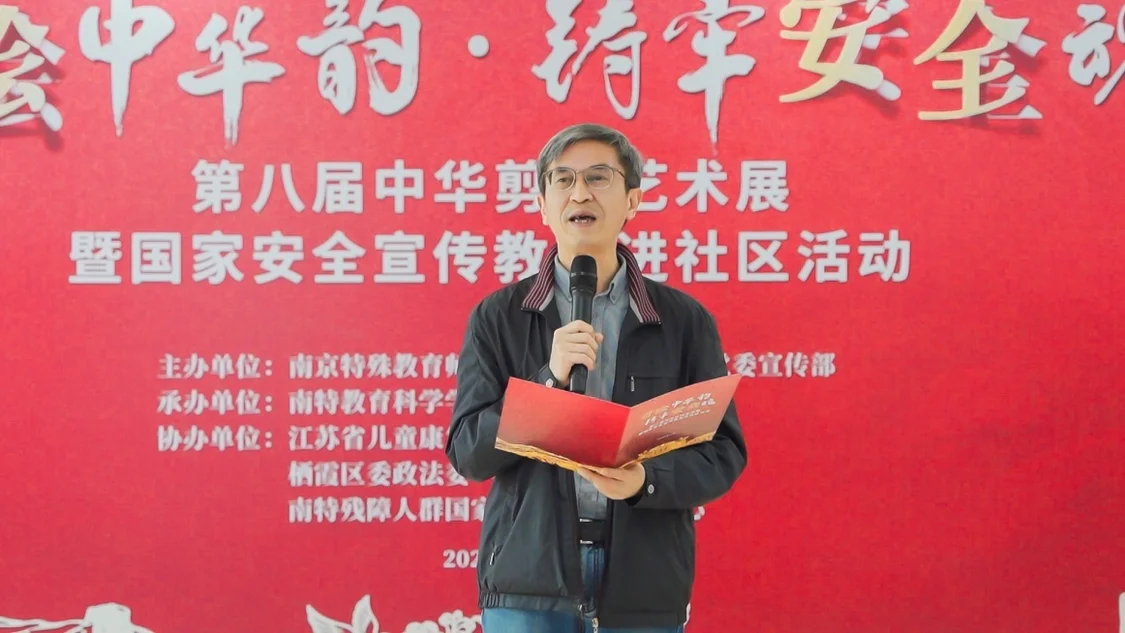 4月13日上午,南京特殊教育师范学院在栖霞区燕子矶街道举办“剪绘中华韵,铸牢安全魂”第八届中华剪纸艺术展暨国家安全宣传教育进社区活动。校党委副书记谭忠出席开幕式并致辞。