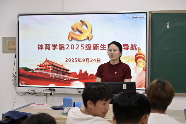 为推进新生思想政治教育,引导2025级新生锚定理想、传承红色基因,9月24日下午,体育学院组织员李媛媛老师为全体2025级新生开展政治导航教育。授课伊始,李老师以“党的初心和使命”为切入点,结合革命先辈事迹,回顾党从红船启航到成为世界第一大执政党...