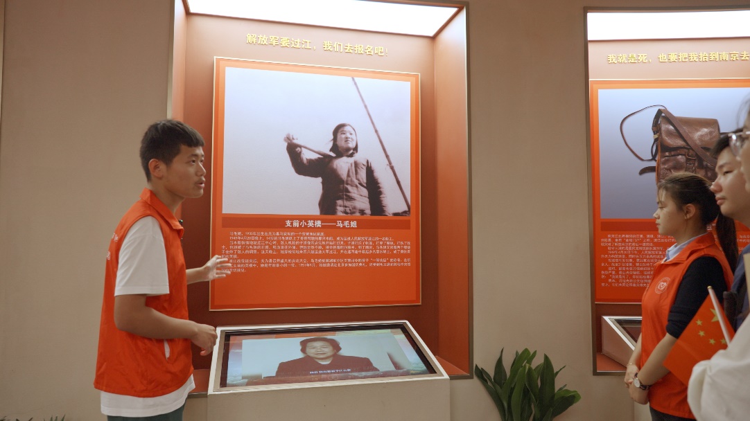步入展厅,在课程主讲老师的带领下,同学们深切感受渡江战役的波澜壮阔,感受渡江战役中人民群众的历史主体地位。主讲老师用声情并茂的声音向学员们讲述渡江战役的历史,也让他们去触摸相关的文字与浮雕,使同学们对这段历史有了更深刻地了解。中国共产党领导的人民解放军在西起九江、东至江阴的千里江面,分三路突破国民党反动派的防线,解放江南地区,为新中国的建立奠定了坚实基础。
