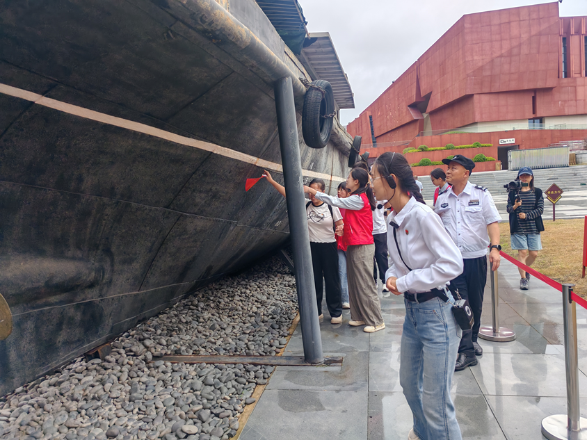 为贯彻落实习近平总书记对学校思政课建设的重要指示精神,推进习近平新时代中国特色社会主义思想“三进”,马克思主义学院“有爱无碍”红色宣讲团于2025年9月26日,来到渡江胜利纪念馆,面向学院思想政治教育专业本科生、南京盲人学校中高年级学生,讲授“江山就是人民,人民就是江山”专题思政课。