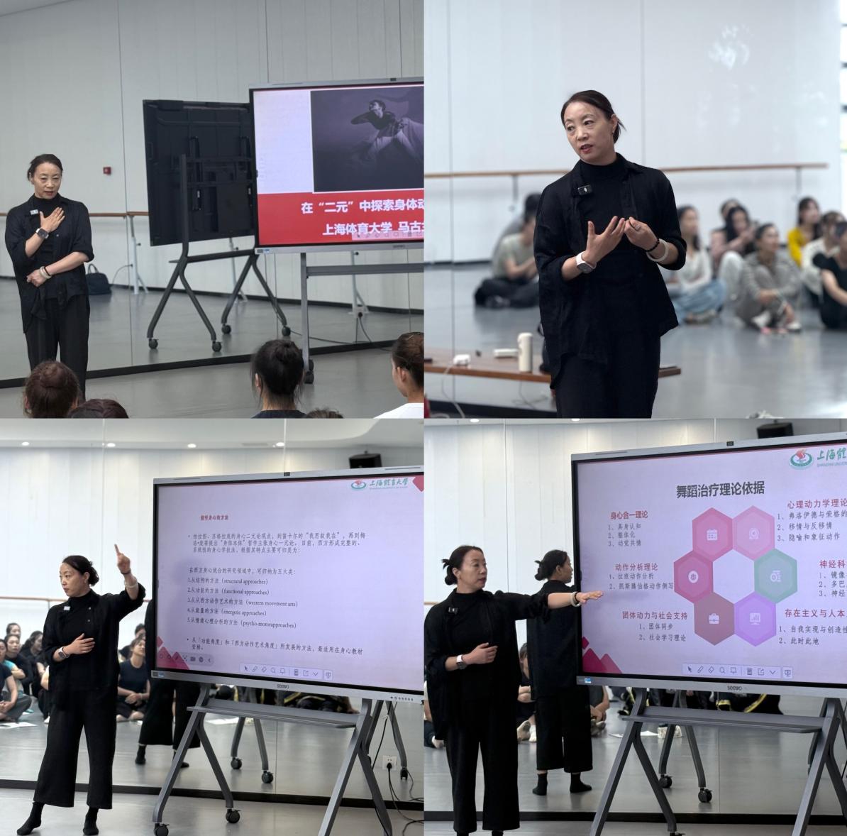 9月30日下午,音乐与舞蹈学院邀请上海体育大学博士生导师马古兰丹姆教授以“在‘二元’中探索身体动作的智慧”为主题,为舞蹈系师生带来一场舞蹈治疗专题讲座,并开展相关实操工作坊。