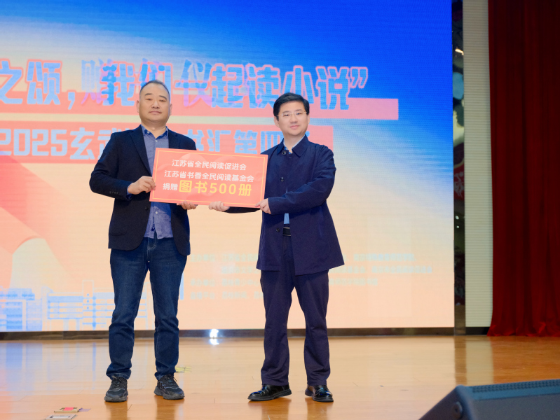 活动现场播放了“秋之颂,我最喜爱的小说”全国读者征集集锦视频,万千读者的“心动瞬间”汇聚成一场跨越地域与群体的“心灵合唱”。此外,江苏省书香全民阅读基金会现场向我校捐赠图书,让文学的温暖与力量持续传递。