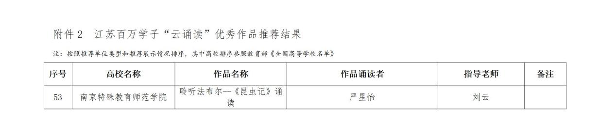 同时,在“江苏百万学子‘云诵读’”活动中,严星怡同学的作品《聆听法布尔—〈昆虫记〉诵读》以清晰的咬字、饱满的情感与出色的艺术感染力,成功入选优秀作品名单。