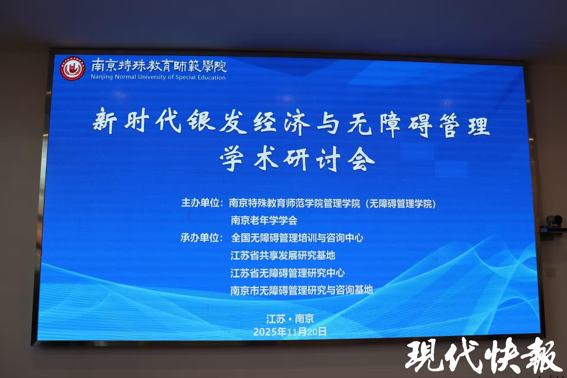 现代快报讯(通讯员 宋宁宁 记者 李楠)11月20日,由南京特殊教育师范学院管理(无障碍管理)学院与南京老年学学会共同主办的“新时代银发经济与无障碍管理”学术研讨会在南京特殊教育师范学院召开。来自高校科研机构、行业组织、企业机构及社会服务领域的专家学者汇聚一堂,围绕银发经济发展趋势、无障碍事业制度建设、智慧康养创新应用、适老化产业发展及专业人才培养等热点议题展开深入交流探讨。