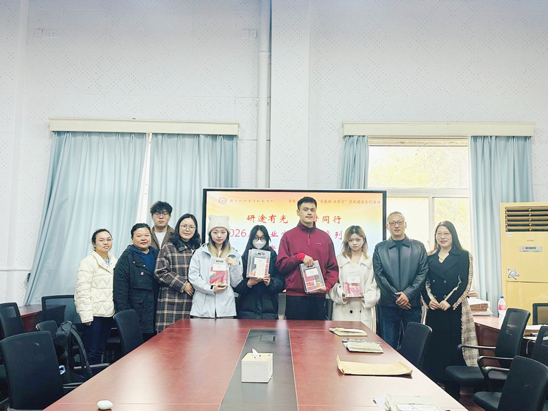 为助力2026届毕业生坚定考研信念、缓解备考压力、感受学院关怀,近日,音乐与舞蹈学院举办“研途有光,逐梦同行”系列活动之2026届毕业生考研慰问活动。学院领导班子成员、毕业班辅导员以及部分考研学生代表共同参加本次活动。
