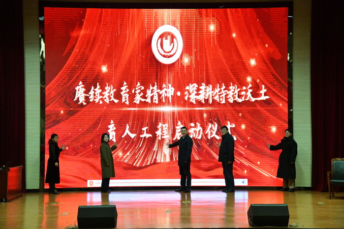 随后举行“赓续教育家精神,深耕特教沃土”育人工程启动仪式。吴彬江副校长、朱正东部长、教育部教育家精神宣讲专家张龙、江苏省教学名师史玉凤及优秀学生代表杜泽元共同登台,启动“赓续教育家精神,深耕特教沃土——育人工程”,标志着学校2026年度“教育家精神育人工程”正式拉开帷幕。