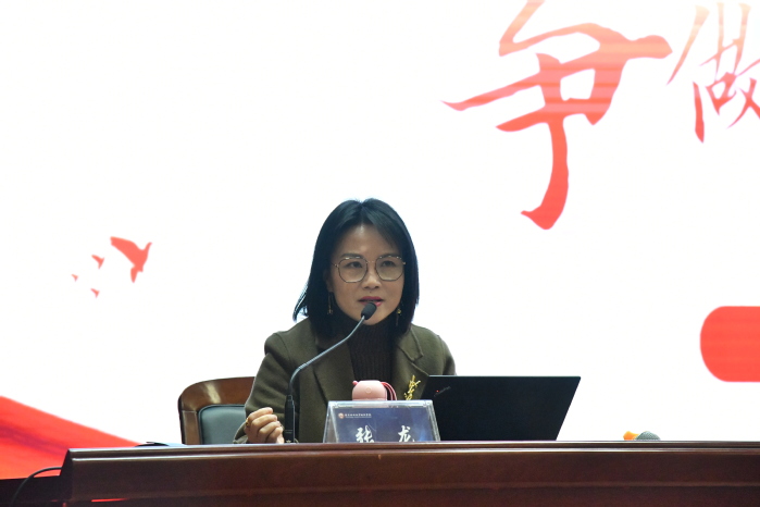 启动仪式后,进入首场专题讲座环节。宣讲专家张龙副校长应邀作题为《弘扬教育家精神 争做新时代大先生》的主旨报告。张校长曾受邀参加北京九三阅兵,被授予“中国好人”“全国三八红旗手”“全国五一劳动奖章”“全国最美教师”“全国模范教师”等多项国家级荣誉。