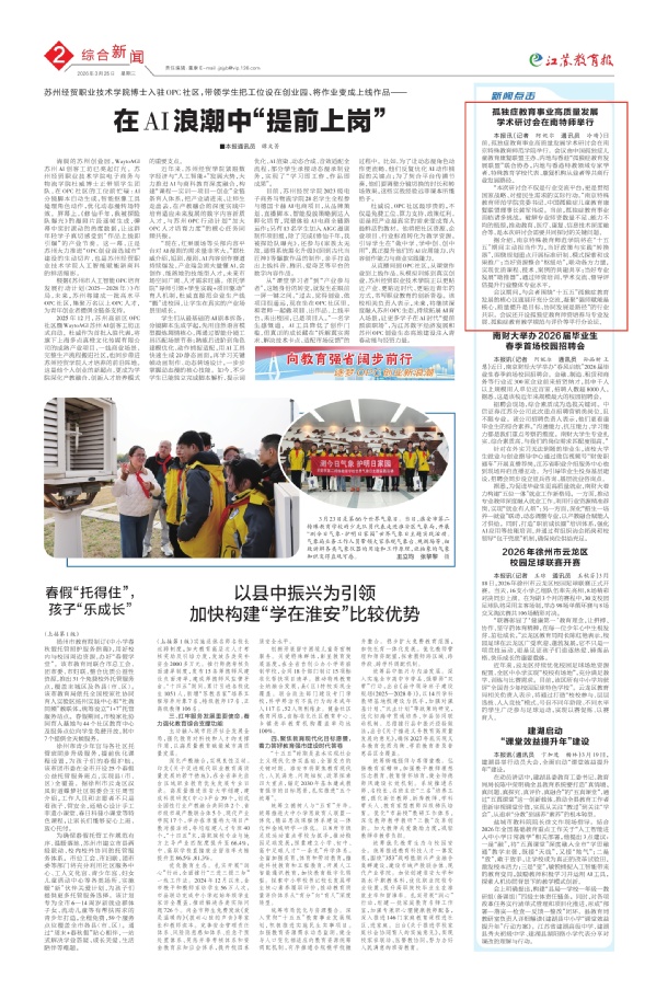据介绍,南京特殊教育师范学院将在“十五五”期间主动担当作为,当好政策与实践“转换器”,围绕规划重点开展标准研制、模式探索和成果推广;当好资源整合“枢纽站”,联动各方力量,实现优质课程、技术、案例的共建共享;当好专业发展“助推器”,通过师资培训、学术交流、督导评估提升行业整体专业水平。