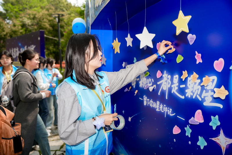 “星海·同行”融爱体验日活动在残障名人文化园温情启幕。活动采用游园会与主题展览相结合的形式,划分体验区、互动区、科普区、打卡区四大功能区域,开展融合互动游戏、感统训练体验、孤独症知识科普问答、主题打卡、爱心留言等丰富活动。师生们在轻松愉悦的氛围中,深入了解孤独症群体身心特点,破除认知误区与偏见,实现从“认知了解”到“主动关爱”的转变,让理解、接纳、互助的文明理念在校园落地生根。