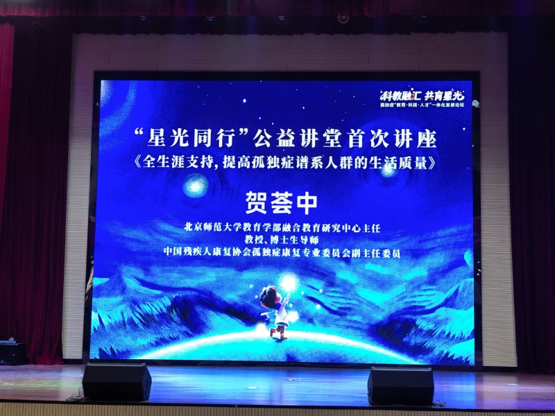 启动仪式后,讲堂迎来首场专题讲座。特邀北京师范大学教育学部融合教育研究中心主任、教授、博士生导师,中国残疾人康复协会孤独症康复专业委员会副主任委员贺荟中,以《全生涯支持,提高孤独症谱系人群的生活质量》为题作专题分享。讲座采用“线上+线下”相结合的形式,同步面向孤独症儿童家长、特校与康复机构从业者、我校师生开放,为孤独症群体全生涯支持体系建设提供了权威的理论指引与可落地的实践指导。