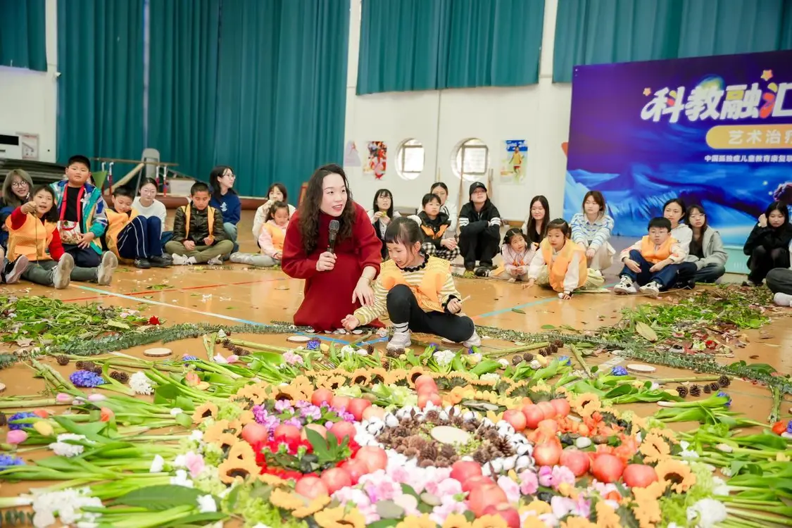 艺术治疗实践共创活动以大地艺术为疗愈载体,邀请南京市50名普通学生与10名孤独症儿童及大学生携手参与。孩子们以落叶、枯枝、花瓣、石子等自然材料为创作媒介,并肩协作完成大型曼陀罗主题大地艺术作品。南京特殊教育师范学院美术与设计学院院长赵健表示:“希望孩子们通过视觉、嗅觉、触觉等直观体验打破沟通壁垒,让不同群体在双向陪伴中收获友谊与成长,真正实现艺术疗愈共生共创。”