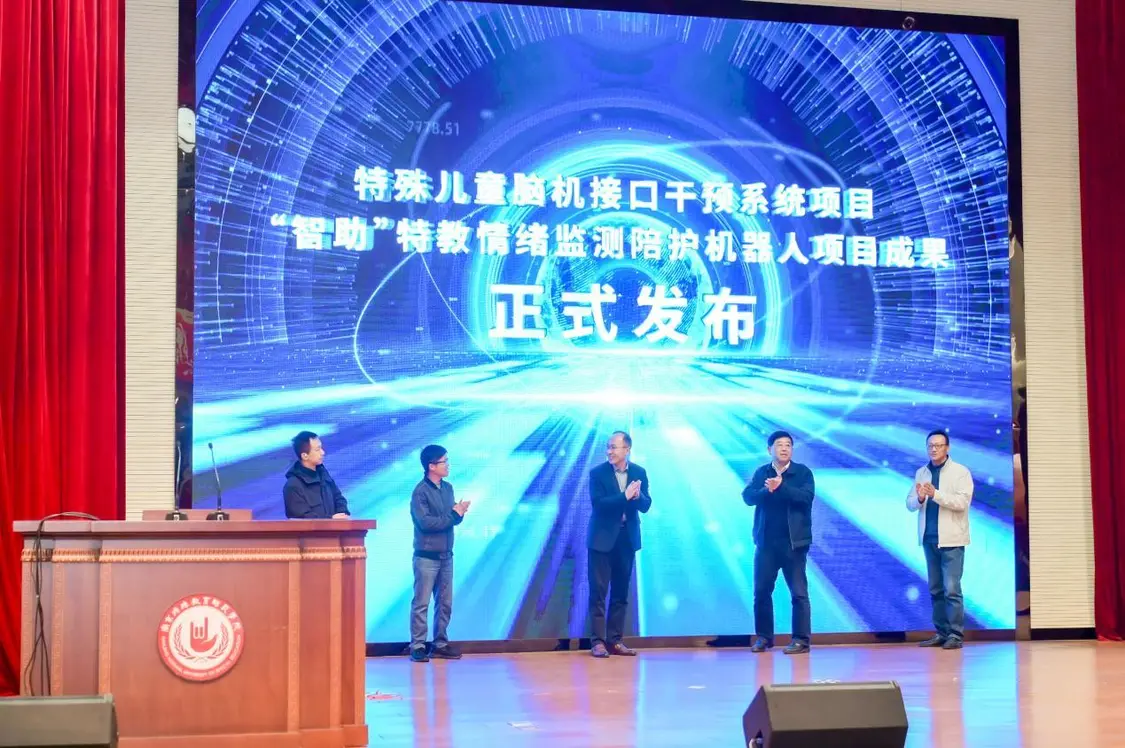 活动现场,脑机科技研究院特殊儿童脑机接口干预系统、“智助”特教情绪监测陪护机器人两大核心科研成果正式发布。