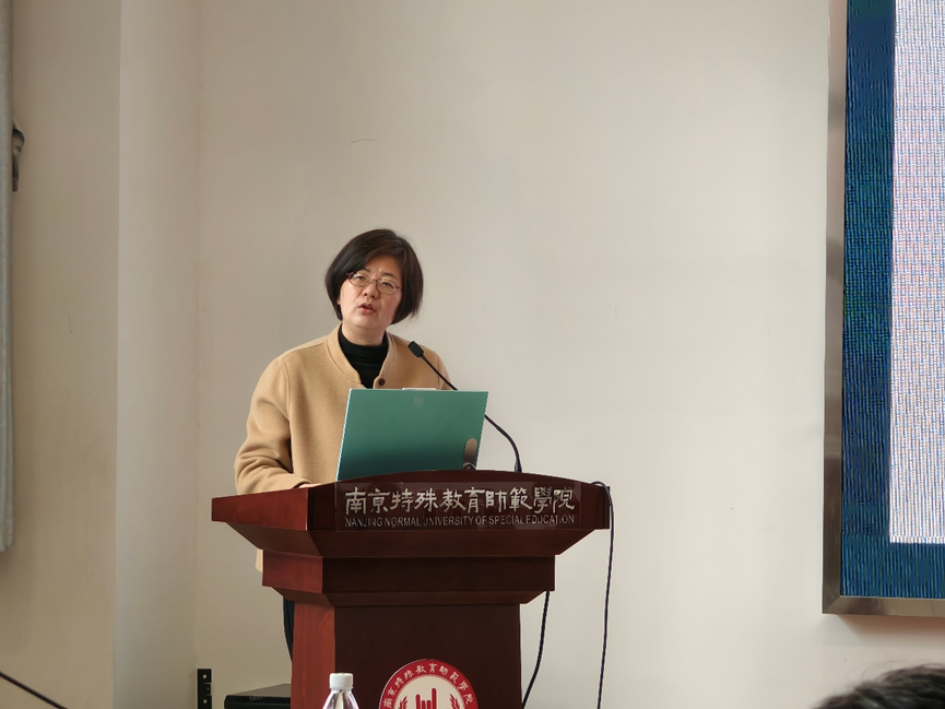 江苏大学马克思主义学院院长李丽教授、我校马克思主义学院院长张九童教授分别介绍两所大学马院建设情况。李丽教授表示,江苏大学马克思主义学院作为江苏省重点学院,拥有马克思主义理论、哲学两个一级学科硕士点,思想政治教育专业为国家级一流本科专业建设点,在学科建设、教学改革、科研立项等方面积淀较为深厚。张九童教授介绍,南京特师马院立足学校特殊教育办学特色,聚焦特殊群体思政教育与融合教育,着力打造服务特殊师范教育的特色型马克思主义学院,在思政课教学创新、特教思政研究、实践育人等方面形成了鲜明特色亮点。