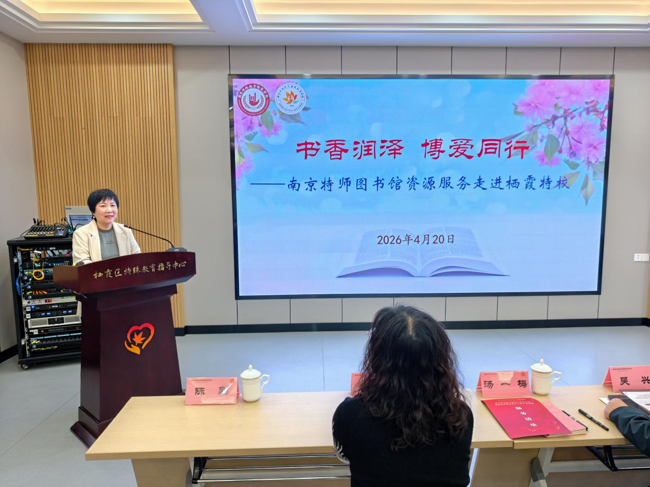 为深入践行“博爱塑魂”校训精神,充分发挥我校图书馆资源优势与社会服务职能,精准对接栖霞区特殊教育学校(以下简称“栖霞特校”)教师教学科研需求,4月20日下午,图书馆在栖霞特校举行资源服务开放启动仪式暨现场培训活动,正式向栖霞特校开放多项核心资源与服务,助力栖霞特校教师专业成长与特殊教育高质量发展。