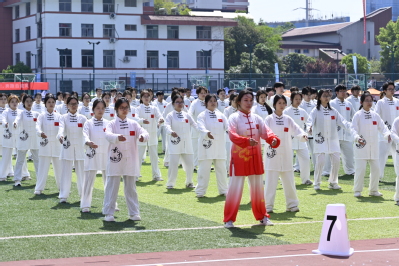 激昂的《运动员进行曲》响彻赛场,国旗队、彩旗队、裁判员、教职工以及各学院代表队循序入场。整齐的步伐铿锵有力,昂扬的神采意气风发,生动展现了我校师生锐意进取的青春风采。各学院紧扣专业亮点带来独具匠心的特色展演,如音乐与舞蹈学院融歌舞、器乐于一体,婉转演绎传统艺术之美,韵味十足;人工智能学院创新呈现机器狗创意舞蹈,硬核科技碰撞趣味活力,氛围感拉满。一幕幕精彩瞬间轮番上演,现场掌声连绵不绝、气氛热烈高涨。最后,太极拳行云流水、沉稳雅致,排舞活力满满、整齐昂扬,一静一动尽显大学生的青春风采。