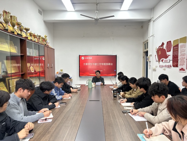 为进一步强化学风建设,规范学生日常管理,明确学生干部履职方向,10月29日下午,体育学院召开主要学生干部工作专题部署会。本次会议由学院直属党支部书记陶刚主持,学生会主席团成员及大一至大三各班班长、学习委员悉数参会,共同聚焦考勤与考试纪律建设...