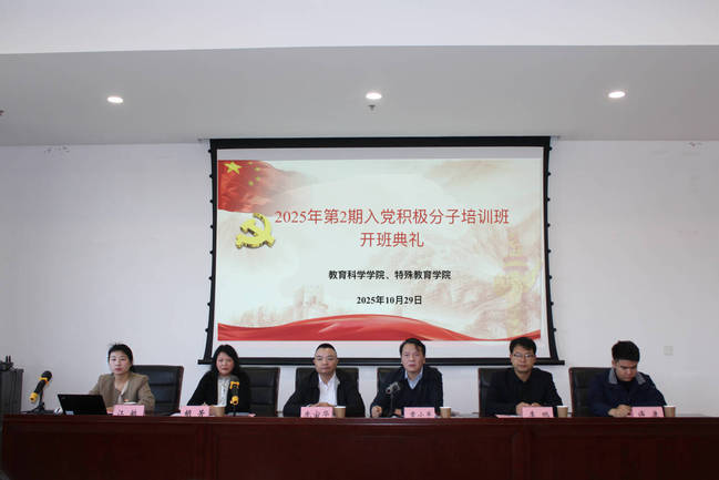 为进一步提升入党积极分子的政治理论水平及党性修养,教育科学学院与特殊教育学院于10月29日中午举行2025年第2期入党积极分子培训班开班典礼,学校党委组织部副部长庞宙华、特殊教育学院党委书记章小军、副书记李鹏、学生第三党支部书记傅康以及教育科学...