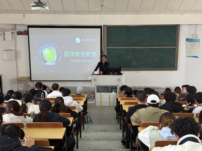 为切实提高全体学生的反诈防骗意识和自我保护能力,有效遏制校园电信网络诈骗案件的发生,近日,体育学院在博韵楼212教室举办反诈安全教育专题讲座。学院全体学生参加此次活动,讲座由体育学院直属党支部副书记谢军老师主讲。 讲座伊始,谢书记结合当前电...